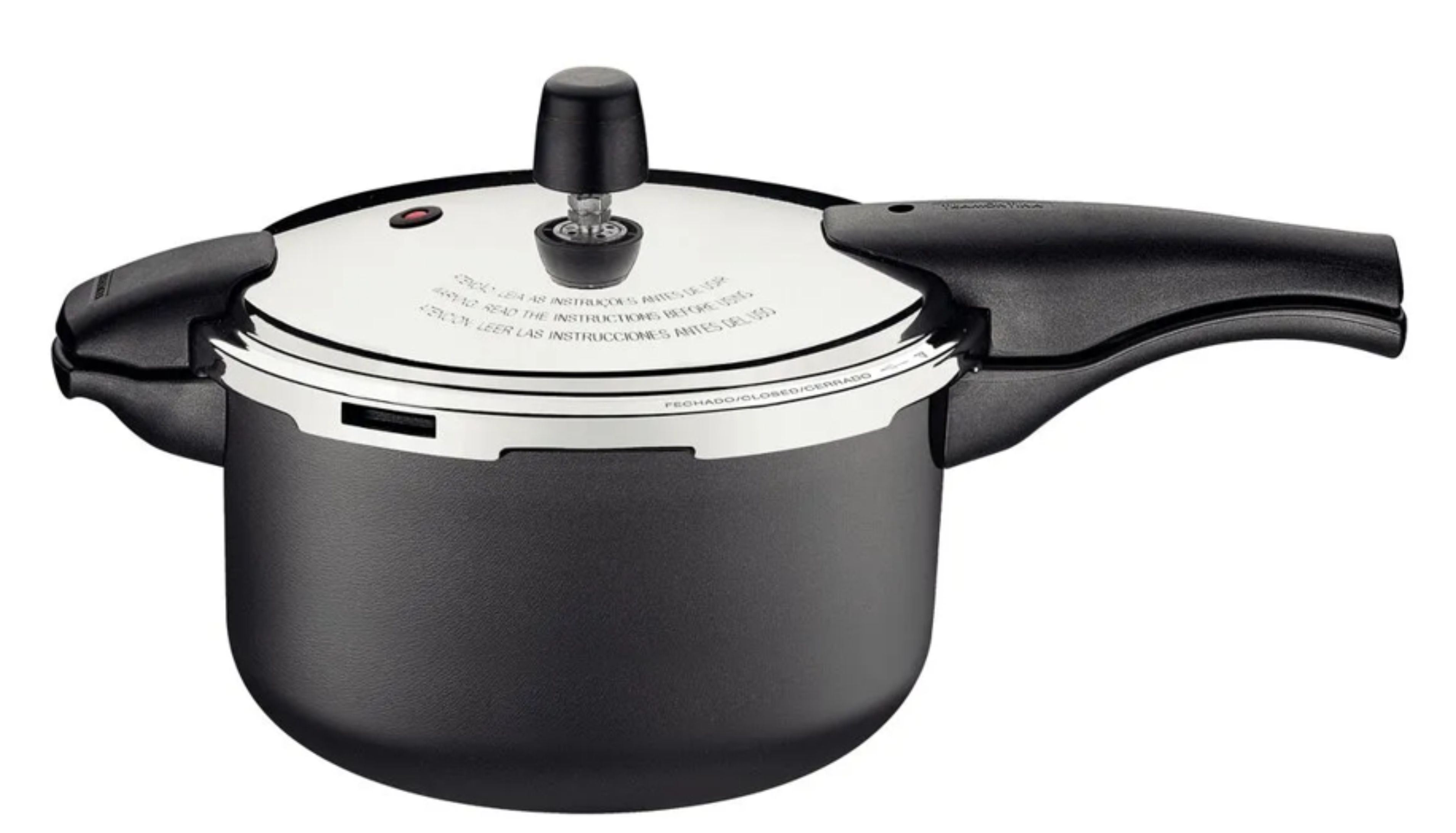Más seguridad, más versatilidad, más sabor. La olla a presión Tramontina Presto de 6 litros está diseñada para quienes buscan cocinar de forma práctica, rápida y segura, sin renunciar a la calidad. Con un cuerpo 100% de acero inoxidable y un fondo triple (acero inoxidable + aluminio + acero inoxidable), garantiza una cocción uniforme, mayor eficiencia térmica y conservación del calor por más tiempo.La olla Tramontina Presto destaca por ofrecer hasta 5 dispositivos de seguridad, incluyendo válvula de seguridad automática, válvula de presión progresiva y cierre con botón giratorio, lo que brinda una experiencia de uso confiable en cada preparación. Este modelo cuenta además con 2 niveles de presión, permitiéndote ajustar la cocción de acuerdo al tipo de alimento, desde carnes más duras hasta vegetales más delicados, todo con un solo giro del selector de presión.Gracias a su construcción en acero inoxidable, esta olla no libera residuos ni altera el sabor de los alimentos, manteniéndolos sanos, limpios y llenos de sabor. Es altamente duradera, resistente a la corrosión, y conserva su brillo y acabado original por mucho más tiempo.Su diseño práctico incluye sistema de apertura y cierre con botón giratorio, que no requiere alinear la tapa con las asas. Solo debes encajar correctamente la tapa, girar el botón hasta el final, y ¡listo! Además, puede utilizarse en todo tipo de cocinas: a gas, eléctricas, vitrocerámicas y de inducción.Con una capacidad de 6 litros, es ideal tanto para el día a día como para ocasiones especiales, permitiéndote cocinar de forma eficiente, saludable y segura.